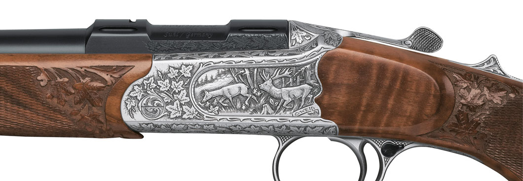 Be it short or long side plates: The hunting rifles of the B-class are made for fine engravings. The decorative features underline the classical character of these guns. The basis is the Jagd edition. The other variants are named after cities in Thuringia. The closer the city is to Suhl, the higher and more luxurious is the engraving and the features. The engravers guarantee for master style artistry with their signature.