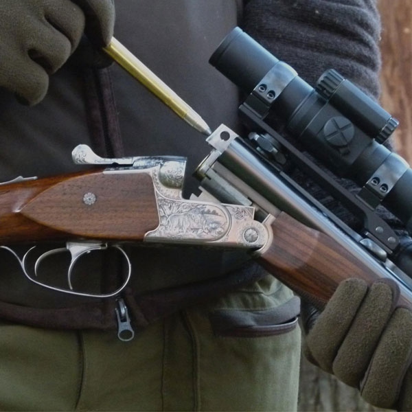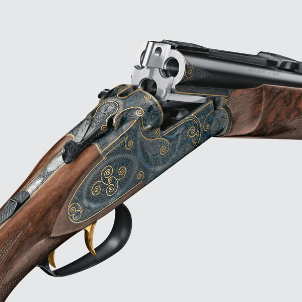 Merkel manufactures two special threeshot guns as uni-type drillings. Here an extra quick single trigger system comes into operation. The front trigger serves as a single trigger for the two upper rifle barrels of the rifle drilling or the two upper shotgun barrels of the shotgun drilling. This enables a rapid second shot without the need to change grip. The rear trigger is reserved for the lower rifle barrel of the rifle drilling or the lower shotgun barrel of the shotgun drilling. The 961LS versions are fitted with long side plates.
