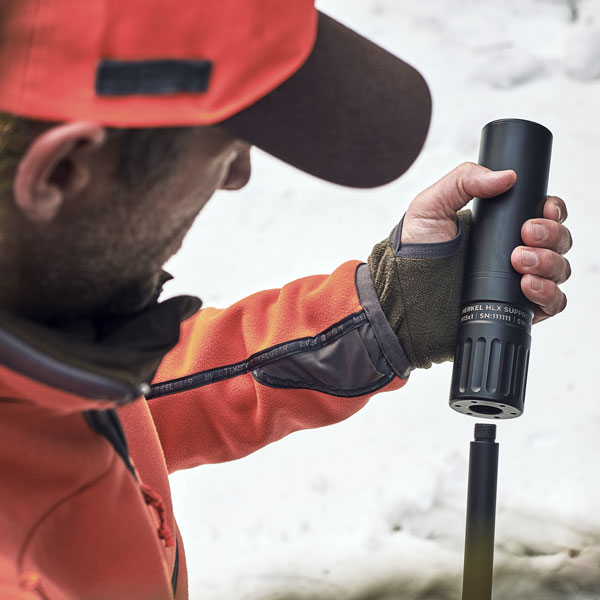 In vielen Ländern der Welt sind Schalldämpfer im jagdlichen Einsatz zugelassen. In anderen – so wie in vielen deutschen Bundesländern – benötigt ein Jäger für einen Schalldämpfer eine amtliche Genehmigung. Wer einen Schalldämpfer verwenden darf, schont sein Gehör, die Umwelt, das Gehör seines Hundes und vermeidet Jagdstress beim Wild. Damit ist der Schalldämpfer aber nicht nur ein Gehörschutz zum Aufschrauben: Der neue HLX Suppressor von Merkel wurde in Kooperation mit dem Schweizer Spezialisten B&T entwickelt. Er passt auf jeden Lauf mit Mündungsgewinde M15x1. Der Merkel HLX Suppressor reduziert nachweislich den Spitzenschalldruck des Mündungsknalls in allen Kalibern um mindestens 30 dB(C) – das ist in einigen Ländern Voraussetzung für die Eintragung. Ausserdem reduziert er den Rückstoß beim Schuss. Mit einem Suppressor-Lauf ist der Lauf mit aufgeschraubtem Suppressor nicht länger als ein Standardlauf.